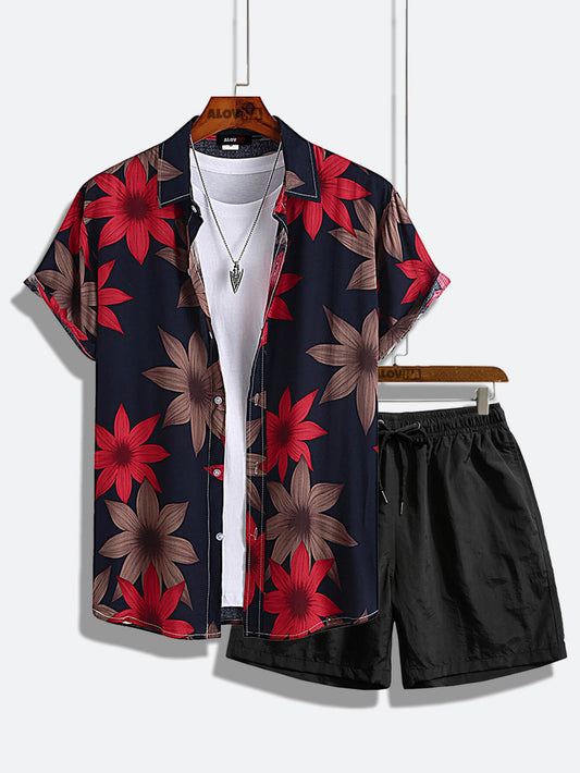 AYZITKA Kırmızı Çiçek Desenli Gömlek Şort Seti